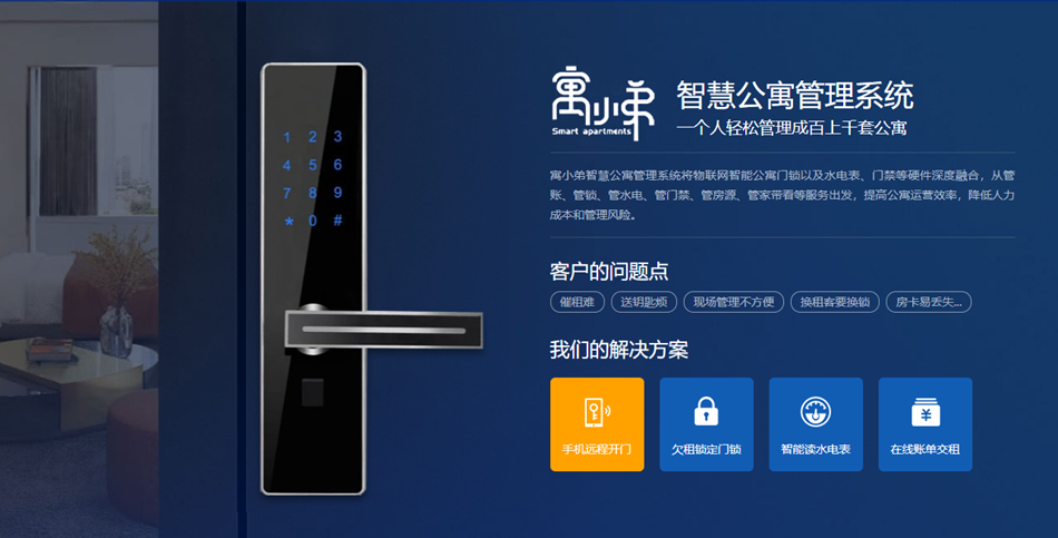 寓小弟智慧公寓管理系統,讓房東在線管理租約,線上收取房間費用,并實時存儲租客信息,讓房東對公寓情況更清晰,租住更安全。